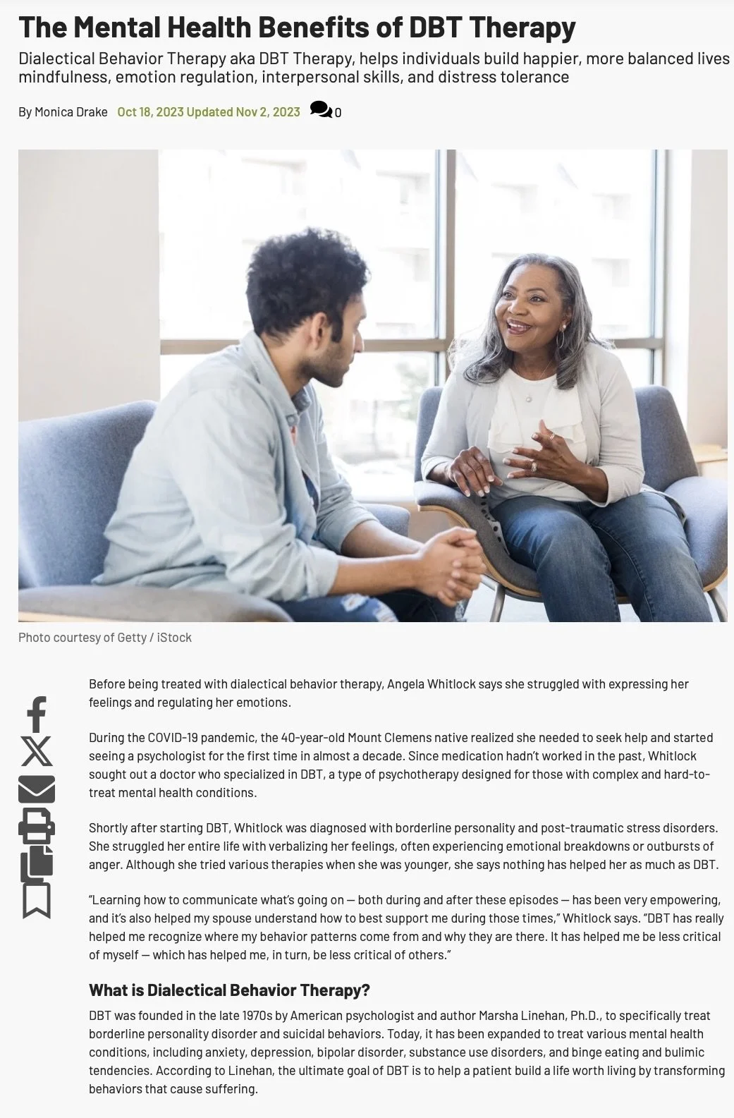 News Program offering free mental health support for youth aims to create future mental health pros Development of an Antiracist Behavioral Health Practicum within a Youth-Serving Community Organization The Mental Health Benefits of DBT Therapy